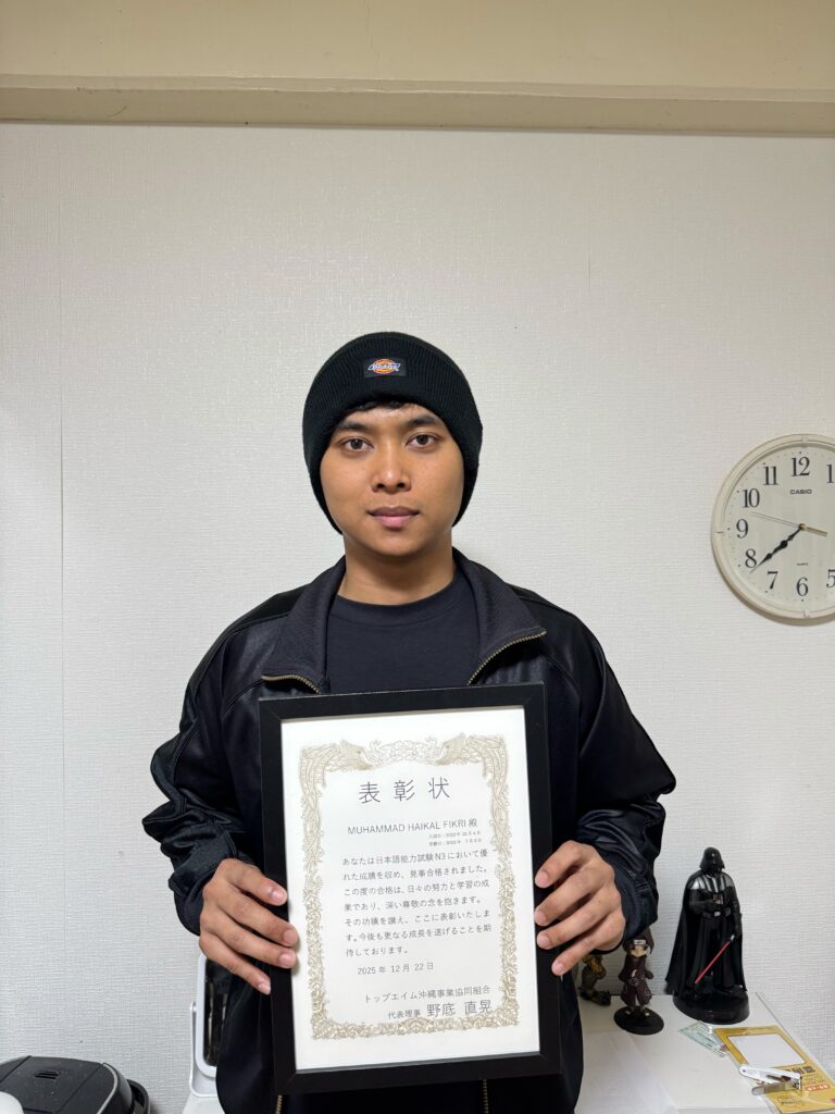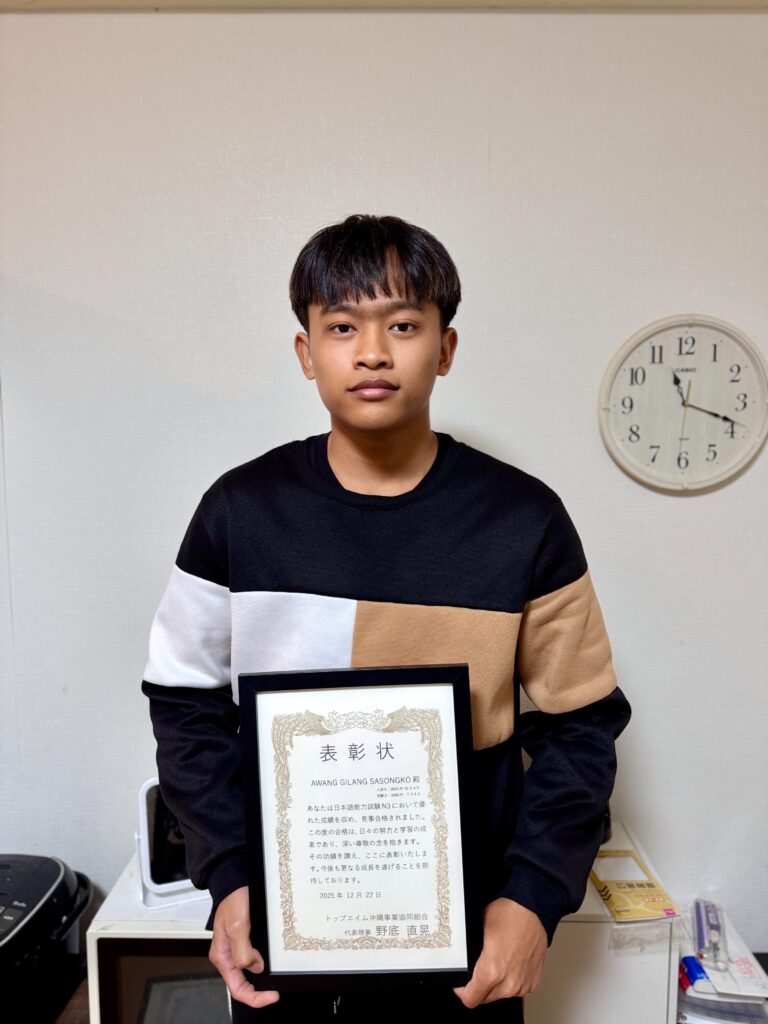 N3取得により、業務上の指示や安全確認、同僚との意思疎通がより正確かつ円滑に行えるようになります。本人の自己研鑽の結果であるとともに、職場内での積極的なコミュニケーションの成果でもあります。